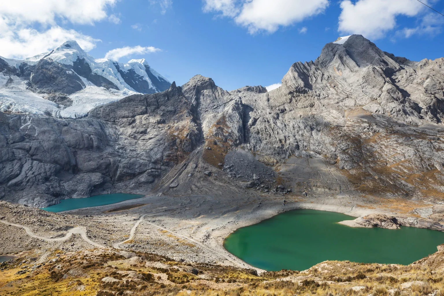 De Andes doorkruisen het land van noord naar zuid en vormen het imposante ruggengraat van Peru, met toppen die vaak bedekt zijn met eeuwige sneeuw. De hoogste berg van Peru is de Huascarán, die met 6.768 meter het land domineert en het landschap dramatisch vormgeeft. Tussen de bergketens ligt het Altiplano een hoogvlakte met een gemiddelde hoogte rond de 3.800 tot 4.000 meter boven zeeniveau. Het is daarmee een van de hoogstgelegen plateaus ter wereld, omsloten door de Andes, met een ijl klimaat en grote temperatuurschommelingen tussen dag en nacht. Het biedt een intrigerende mix van meren, grazige vlaktes en traditionele inheemse dorpen.