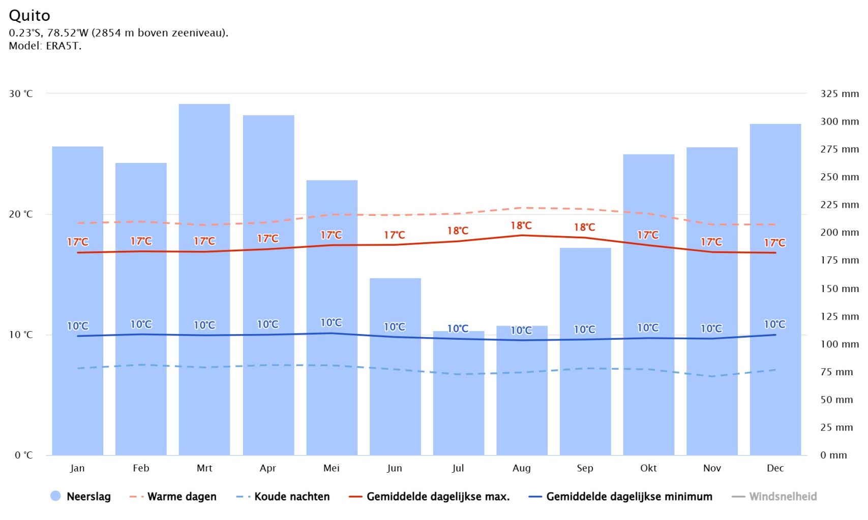 Gegeven de milde temperaturen en de neerslag vinden wij dan ook dat Quito het hele jaar door prima te bezoeken is.